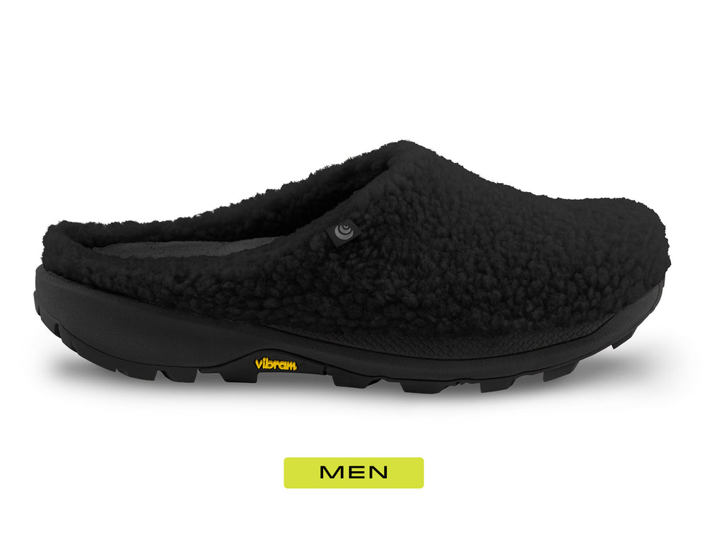 WOMEN Our slip-on recovery shoe is designed not only to restore your feet after a run or workout, but to deliver a super comfortable fit you can slip into for all your daily activities. Perfect to wear without socks, these men's athletic recovery slippers feature a cozy recycled polyester fleece upper and our 3D Wave Sense Insole to offer gentle massaging comfort along the bottom of the foot. We added a Vibram® XS Trek EVO outsole for optimal multi-surface traction and durability so the Topo Athletic Revive is ready to take on whatever the day brings you.
