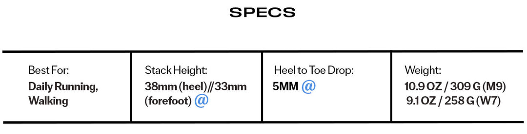 Stability: Light pronation support to gently guide your stride through the gait cycle.